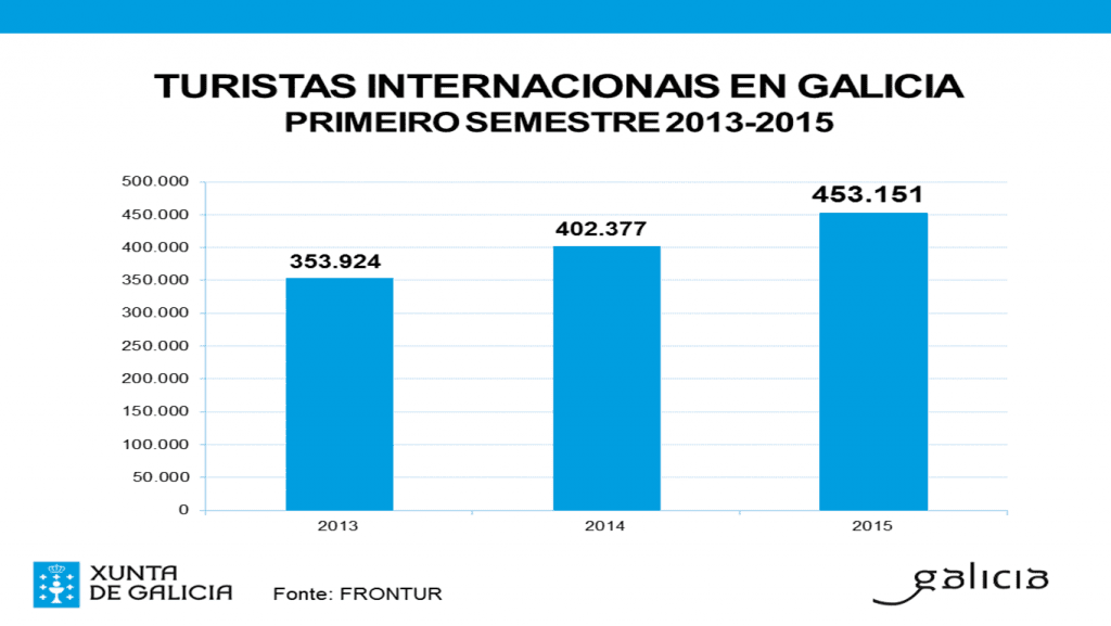 Galicia acada un máximo histórico no primeiro semestre do ano ao recibir máis de 450 mil turistas estranxeiros Redacción CTP / 24 julio, 2015