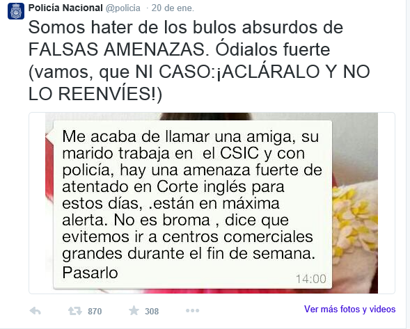 Ataques terroristas en Centros Comerciales. SON BULOS, NO DIFUNDIR