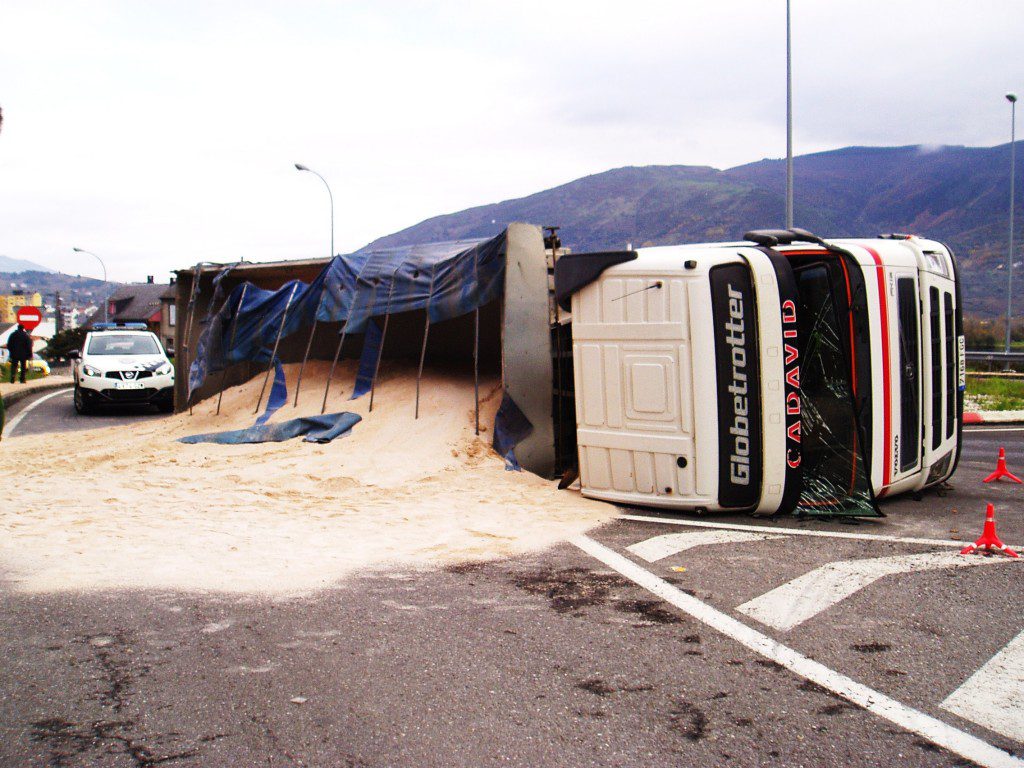 Un camión cargado de arena vuelca en la rotonda del Pablo VI de A Rúa Redacción CTP / 24 noviembre, 2015