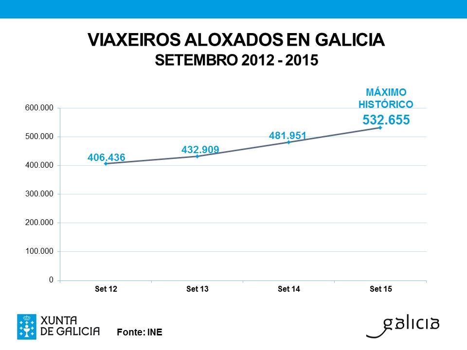 Galicia incrementó sus viajeros alojados en el mes de septiembre en un 10,5% consiguiendo un máximo histórico Redacción CTP / 31 octubre, 2015