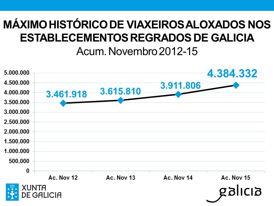 Galicia, récord histórico de 4,38 millones de viajeros en once meses y líder en crecimiento turístico Redacción CTP / 30 diciembre, 2015