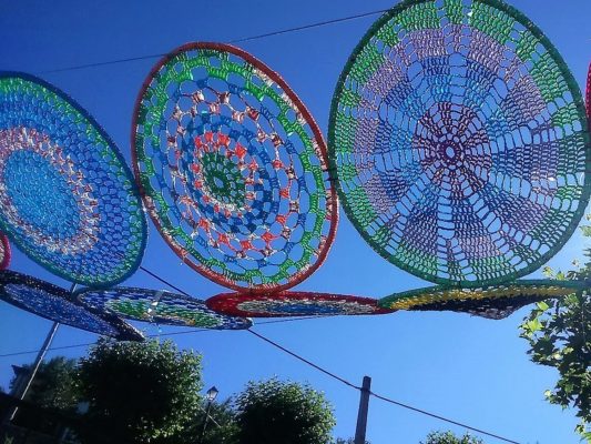 Fue un día muy especial. Mujeres de todas las edades de A Veiga de pueblos del municipio tejieron motivos que adornaron las calles, espacios públicos y casas con motivo de un proyecto que, entre otras cosas, es una apuesta por el reciclaje.