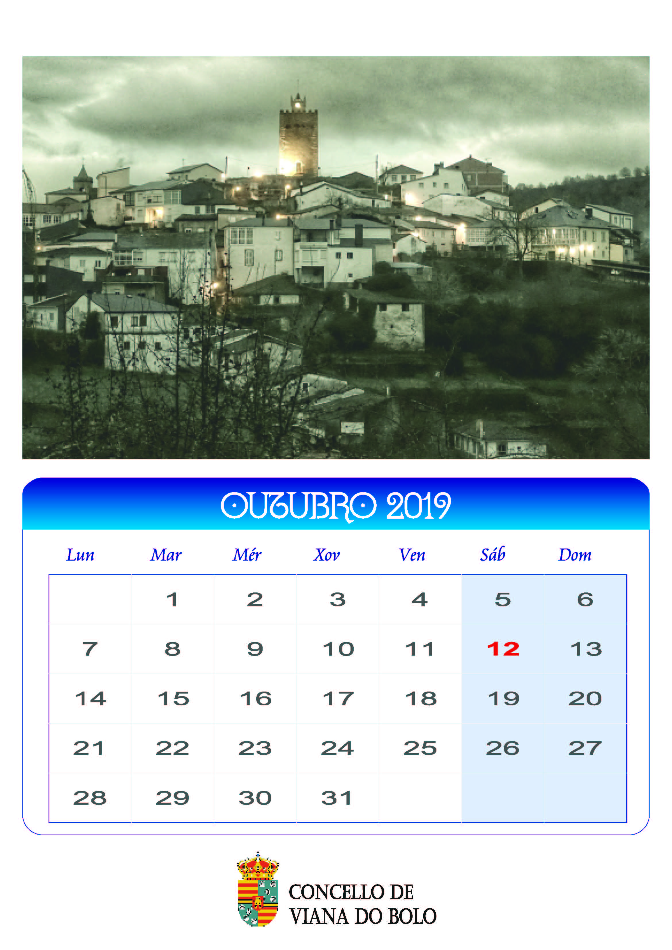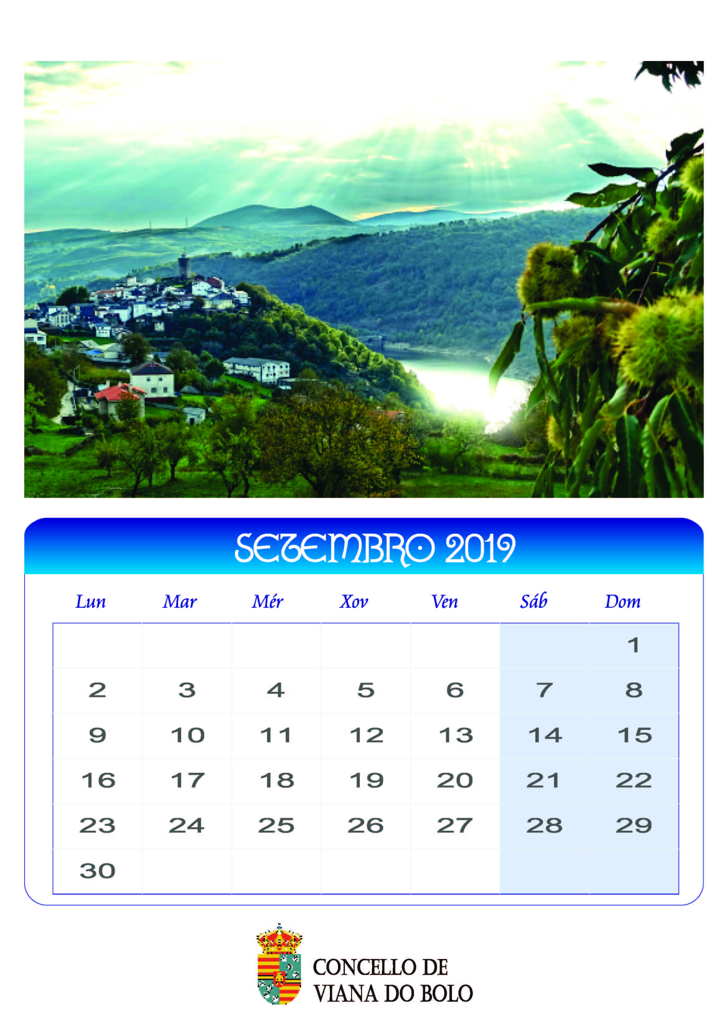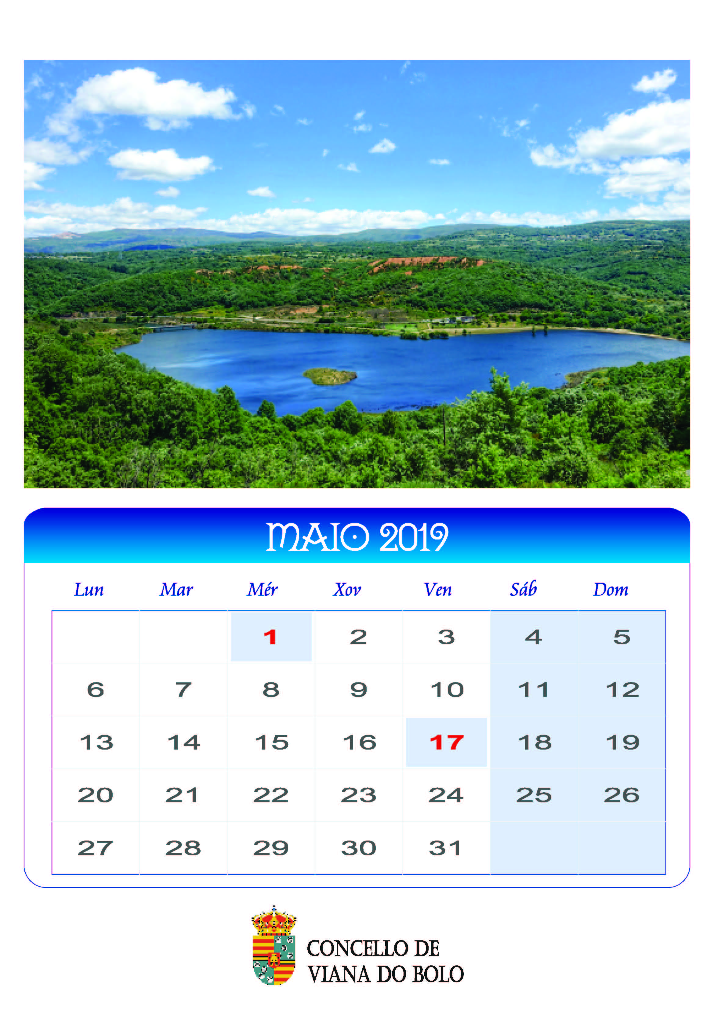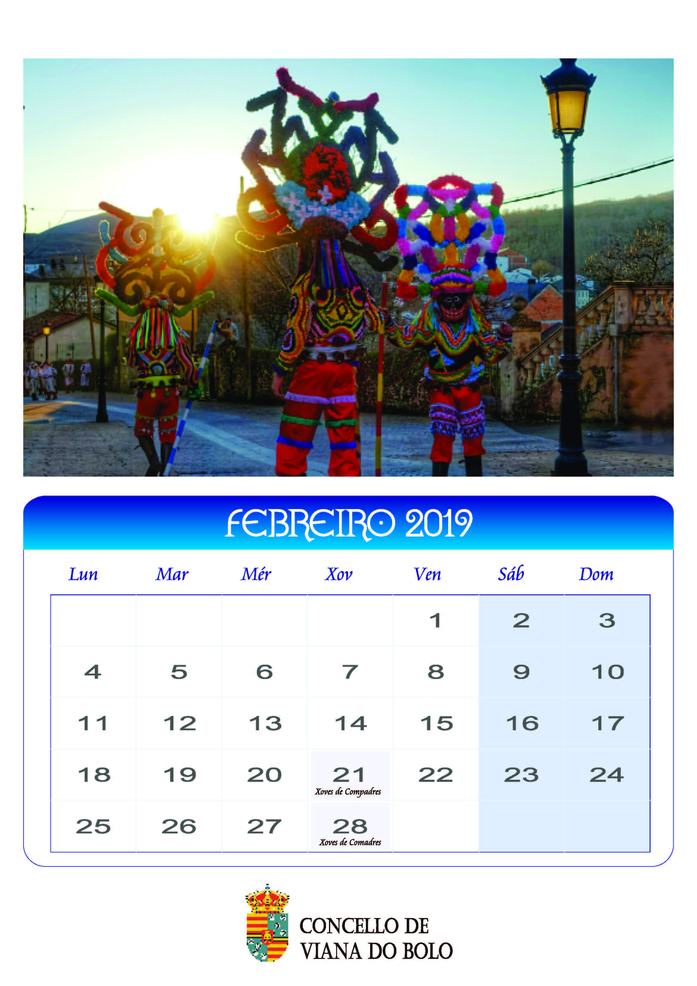 El Ayuntamiento de Viana do Bolo ha editado un calendario que consta de 12 fotografías, una por mes. Dichas fotografías fueron cedidas desinteresadamente por J. Luis Ortiz y Andrés Ortiz a los que el ayuntamiento aprovecha para agradecer este gesto.