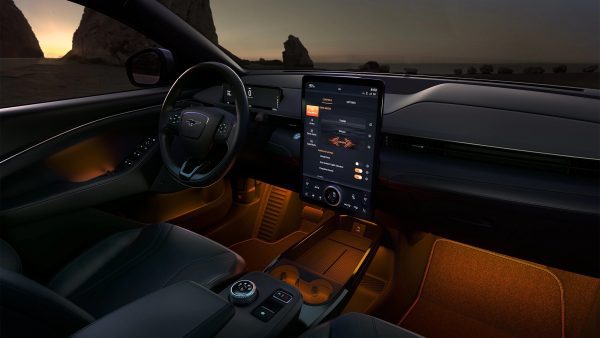 Este nuevo Ford Mustang Mach-E tiene un diseño limpio, elegante y cuenta con unas prestaciones tecnológicas que te garantizan una máxima seguridad durante la conducción. Este coche cuenta con un panel, al más puro estilo minimalista de 10.2 pulgadas, este panel te indica el consumo medio, la velocidad de conducción, la cantidad de kilómetros recorridos y muchos más datos. También cuenta con una pantalla para el infoentretenimiento con disposición vertical, baja, plana y ancha, de 15.5 pulgadas. Esta pantalla cuenta con asistente de voz, GPS, música y mucho más.