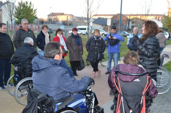La actividad consiste en un paseo en el que las autoridades invitadas hacen el recorrido subidos en una silla acompañadas de la personas socias. El objetivo es detectar posibles problemas de accesibilidad en el recorrido y conseguir una pronta solución.