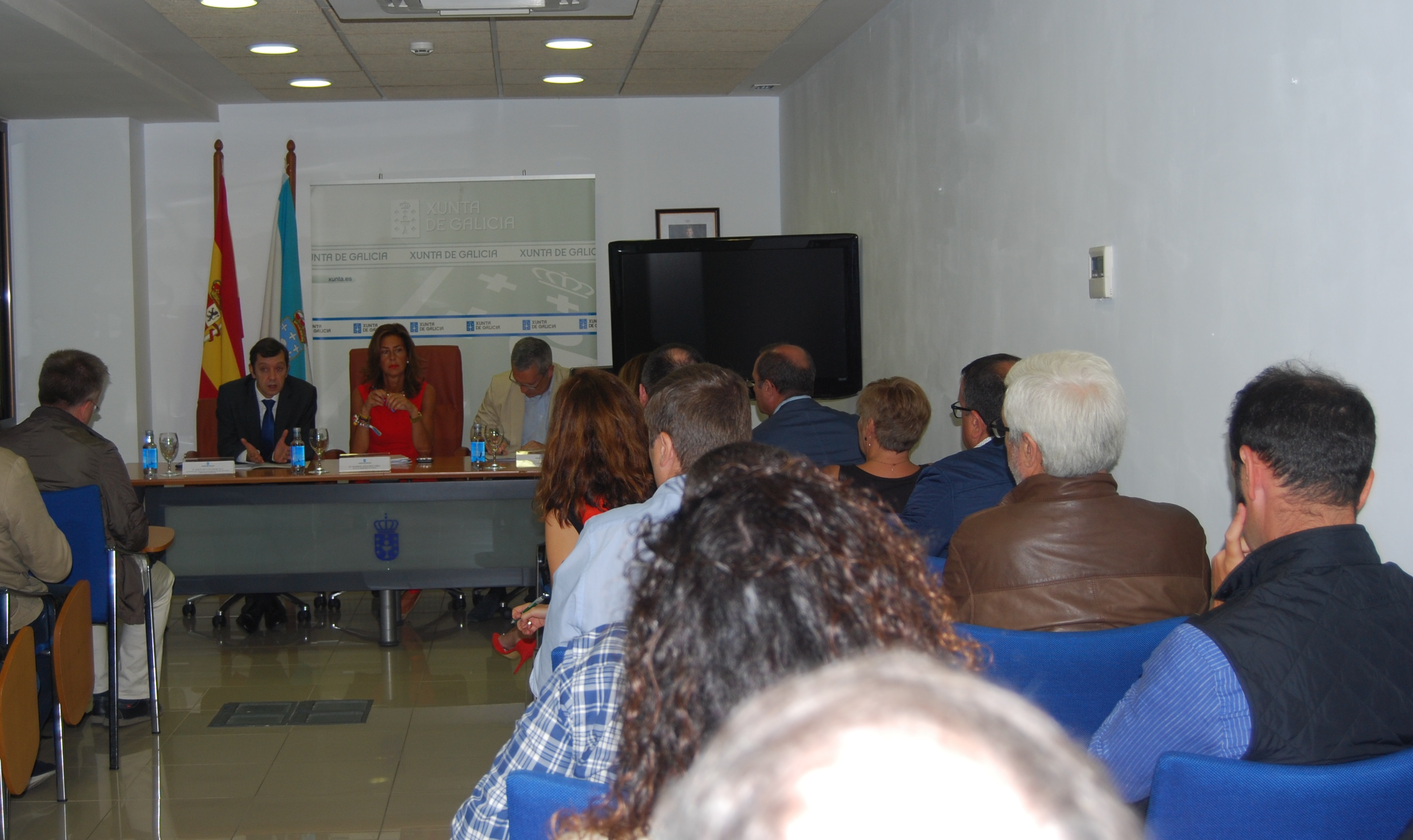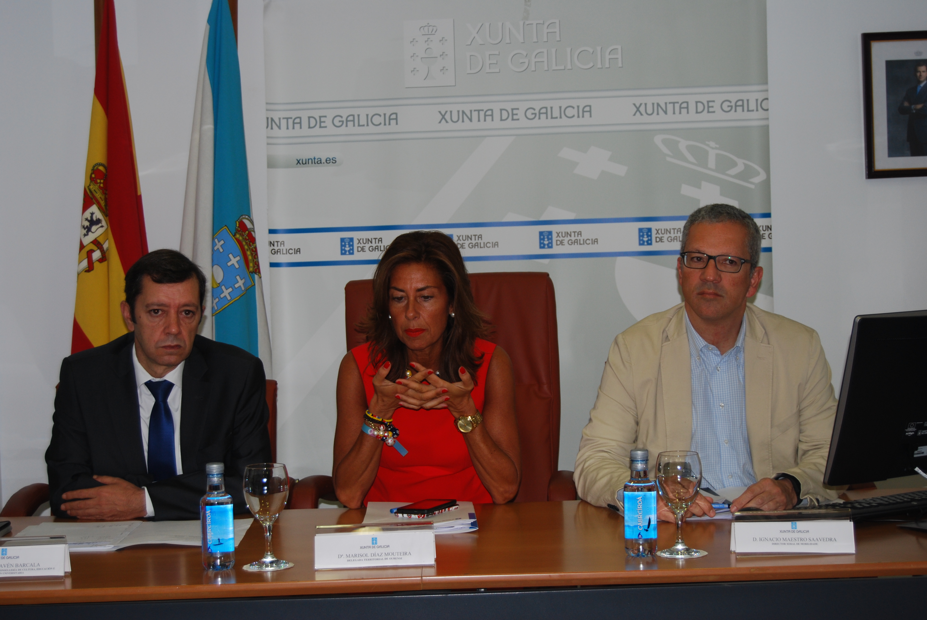 La delegada territorial, Marisol Díaz Mouteira, el director general de Movilidad de la Consellería de Infraestructuras y Vivienda, Ignacio Maestro, y el secretario general técnico de la Consellería de Cultura, Educación y Ordenación Universitaria, Jesús Oitavén, participaron en este encuentro de trabajo junto con técnicos de ambos departamentos y responsables de las empresas de transporte adjudicatarias del servicio.