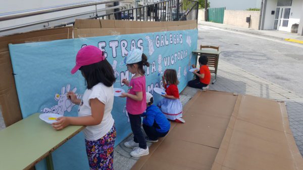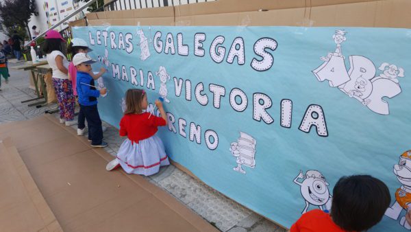 Al final de la misma pudieron disfrutar de una exposición de las obras de la autora y participar en un divertido taller donde los niños y niñas coloraron sus palabras en gallego.