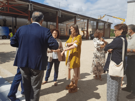 Según pudo comprobar la conselleira, se comenzó a ejecutar el relevo de la cubierta con panel aislante intermedio, así como un cierre lateral de paneles prefabricados de hormigón con aislamiento en la parte inferior y paneles de policarbonato celular en la parte superior que garanticen la iluminación natural.