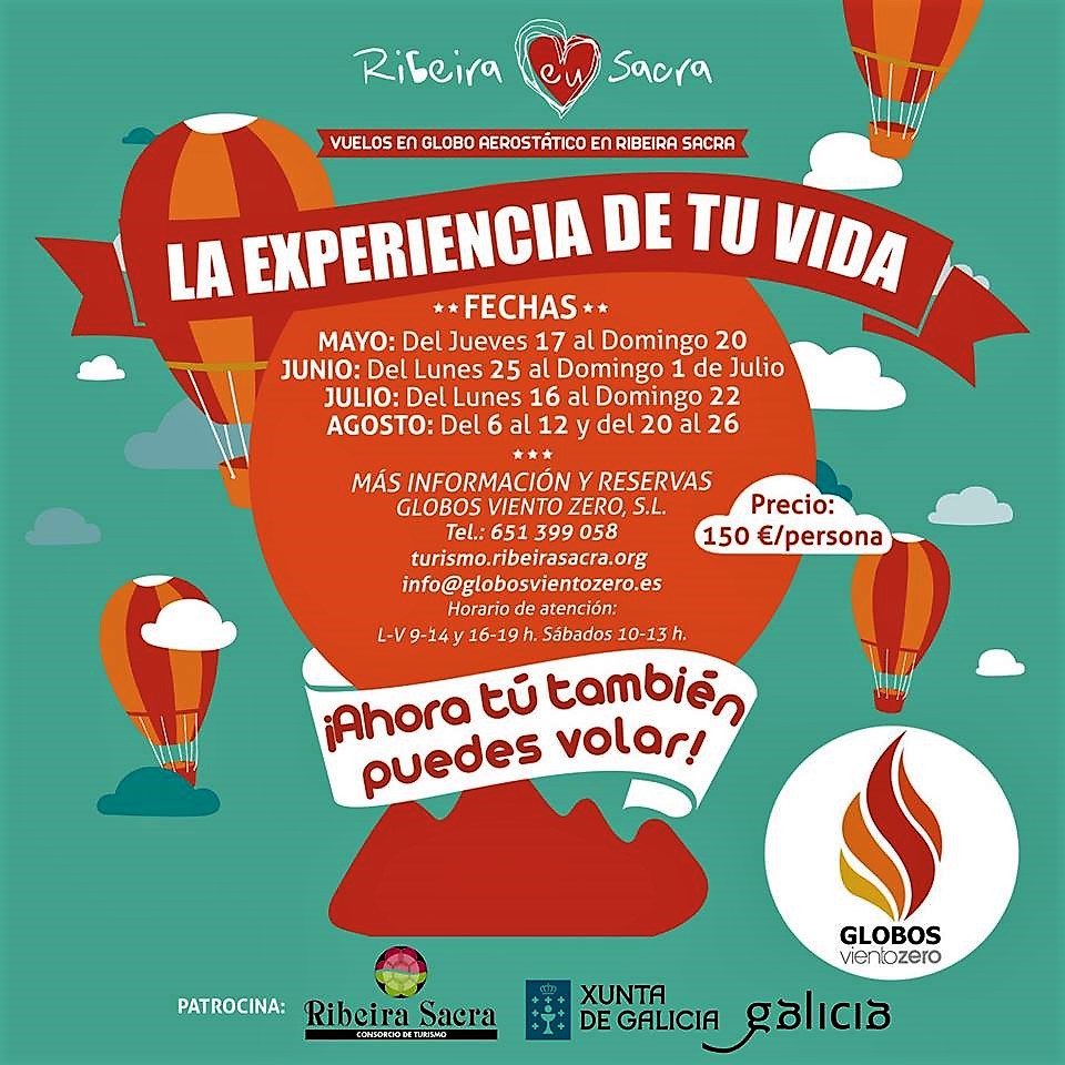 La información y reservas puede obtenerse en Globos Viento Zero S.L. (teléfono 651 399 058) o bien en las páginas web turismo.ribeirasacra.org.
