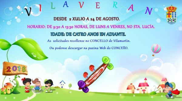El Ayuntamiento de Vilamartín de Valdeorras ha organizado, un año más, “Vilaverán”, programa de actividades destinado a las niñas y niños para pasar el verano. El plazo de inscripción ya está abierto. Comenzará el 2 de julio hasta el 24 de agosto. Los horarios serán de 9,30 a 13,30, de lunes a viernes, en centro Santa Lucía de la localidad. Y la edad es a partir de cuatro años.