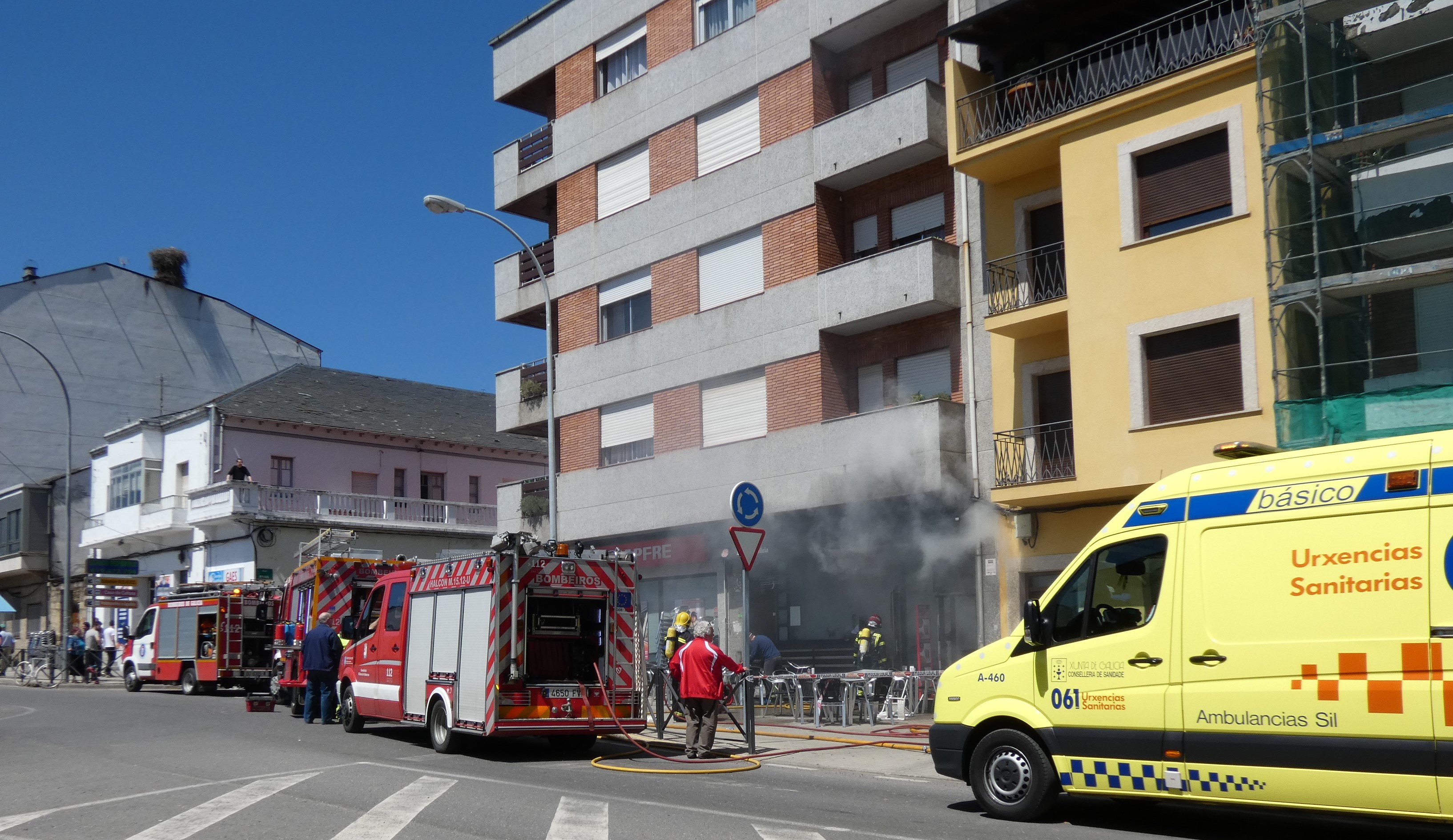Un bar situado en la calle Campogrande número 1 de A Rúa de Valdeorras, Burguer Los 60, registró un incendio que pudo originarse en una campana de la cocina del establecimiento.