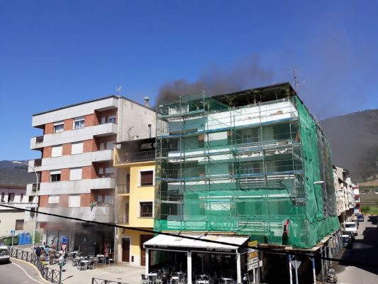 Un bar situado en la calle Campogrande número 1 de A Rúa de Valdeorras,  Burguer Los 60, registró un incendio que pudo originarse en una campana de la cocina del establecimiento.
