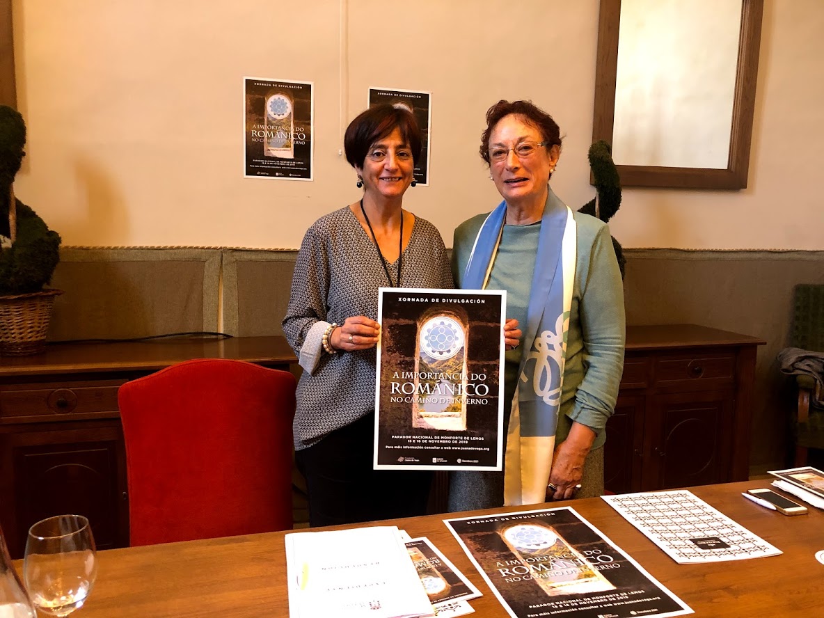 La 1ª teniente de Alcalde del Ayuntamiento de Monforte, Gloria Prada, participó en la presentación de la jornada “La importancia del Románico en el Camino de Invierno” que tuvo lugar en el Parador de Monforte. En el acto estuvo acompañada por la directora de la Escuela Gallega del Paisaje de la Fundación Juana de Vega, Isabel Aguirre, entidad que organiza esta jornada. La jornada se celebrará en el propio Parador Nacional de Monforte los próximos 15 y 16 de noviembre, y la matrícula es gratuita.
