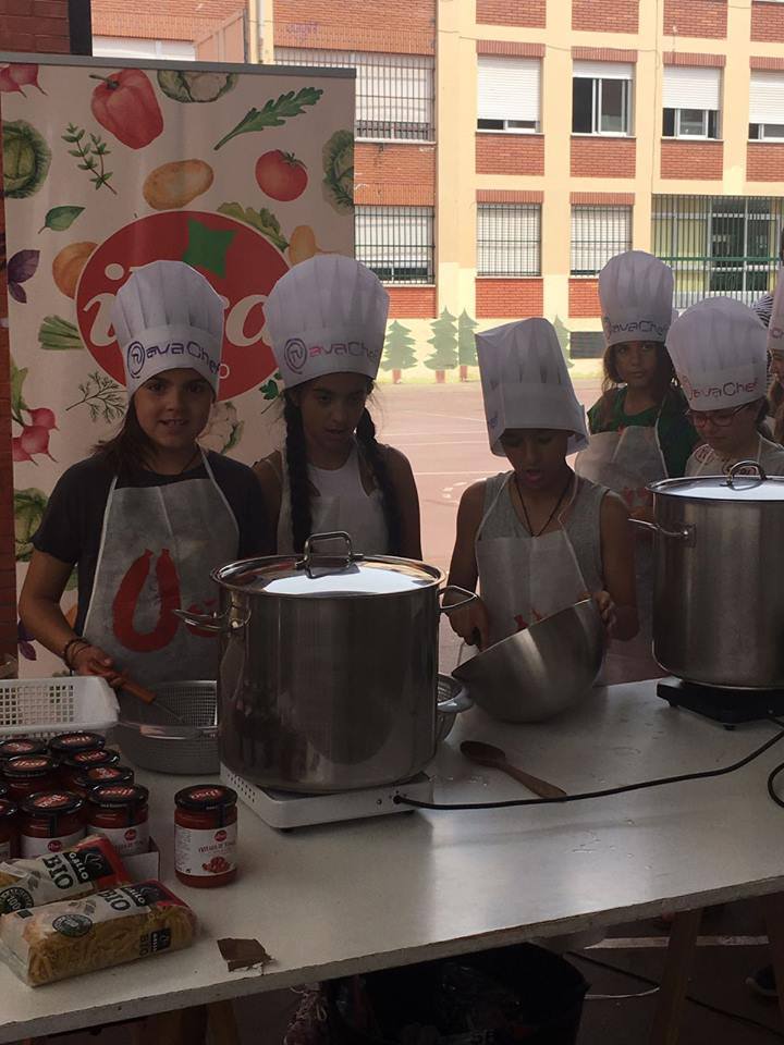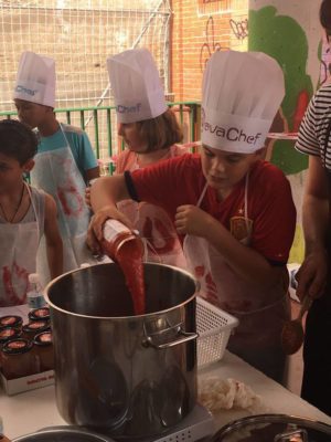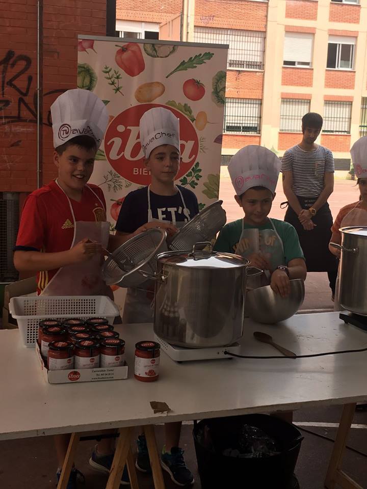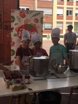 Otro taller que gustó mucho fue las pimenteras de Ponferrada, donde los alumnos de segundo de primaria aprendieron cómo se asa, se pela y se embotan los famosos pimientos bercianos. En el día de hoy los alumnos de 5º realizaron una tomatada fritada con espaguetis y chorizo berciano, todos estos talleres gracias a la colaboración de la empresa IBSA.