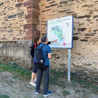 Detrás han dejado ya Valdeorras y Ribeira Sacra, etapas en las cuales han dibujado lugares emblemáticos como Viloira, el Mosteiro de Xagoaza, callejuelas de Petín, Montefurado, la Capela das Farrapas, la Torre del Homenaje de Monforte de Lemos, etc.