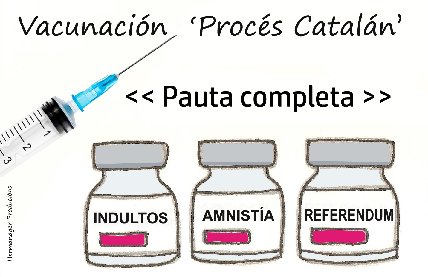 - Su característico humor gráfico vincula dos temas de relevancia, el proceso de vacunación y el catalán