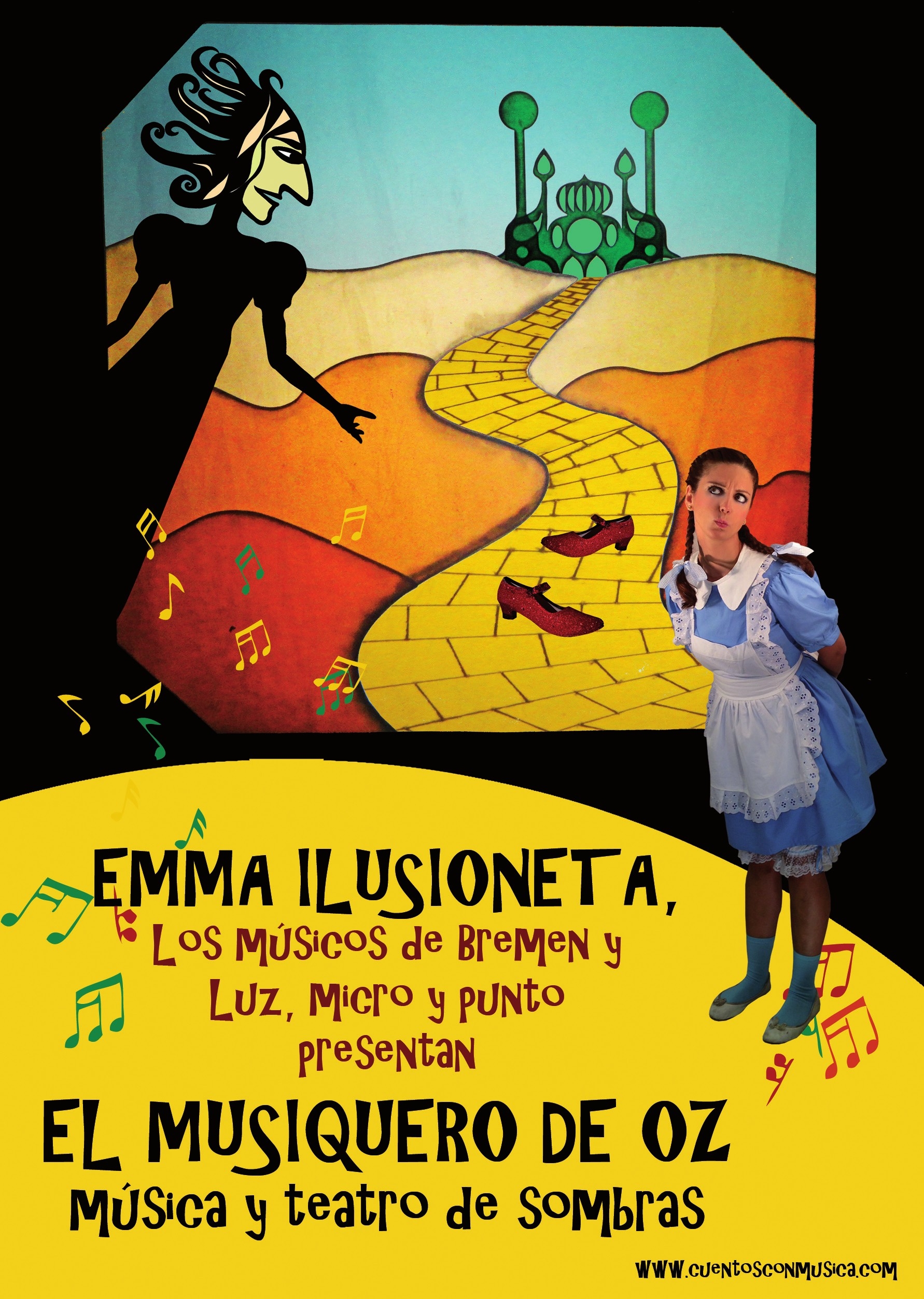 El Musiquero de Oz llega de la mano de la escritora y cuentacuentos EmmA IlusionetA que, junto a la compañía de teatro de sombras Luz, micro y punto y la música en directo de Los músicos de Bremen pondrán en escena la adaptación de una obra conocida por todos: el Mago de Oz.