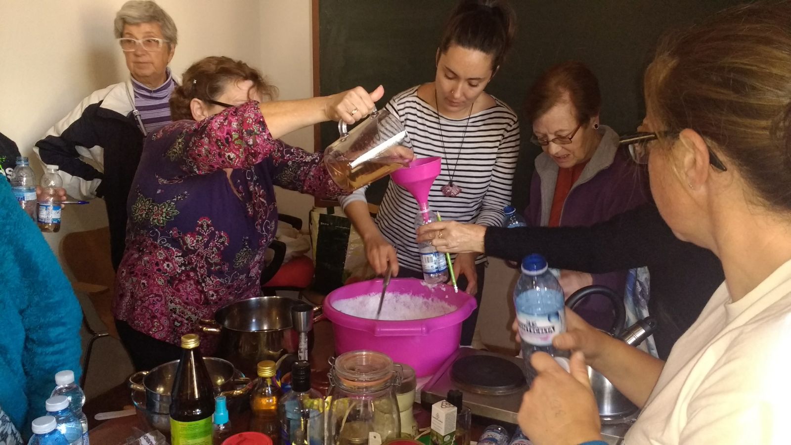 Vecinas y vecinos de Viana aprendieron a elaborar cosméticos de forma natural y productos de limpieza en un taller convocado por el Ayuntamiento que impartió el colectivo Sustinea, concretamente Rebeca Carreiro, coordinadora de formación.