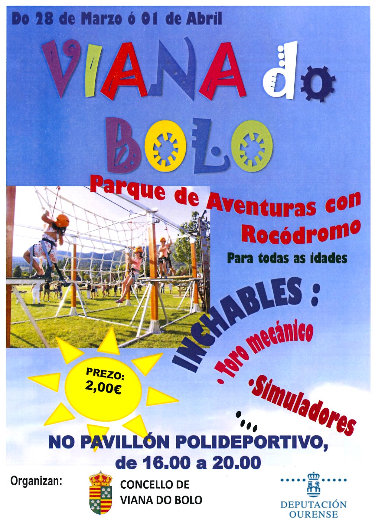El Ayuntamiento de Viana do Bolo, con motivo de las vacaciones de Semana Santa, organiza unas jornadas con actividades de ocio para todas las edades a fin de dinamizar la localidad y ofrecer alternativas al ocio. Como novedades, este año habrá un parque de aventuras y la instalación de un rocódromo para que las vecinas y los vecinos puedan practicar la escalada de una manera segura y controlada.