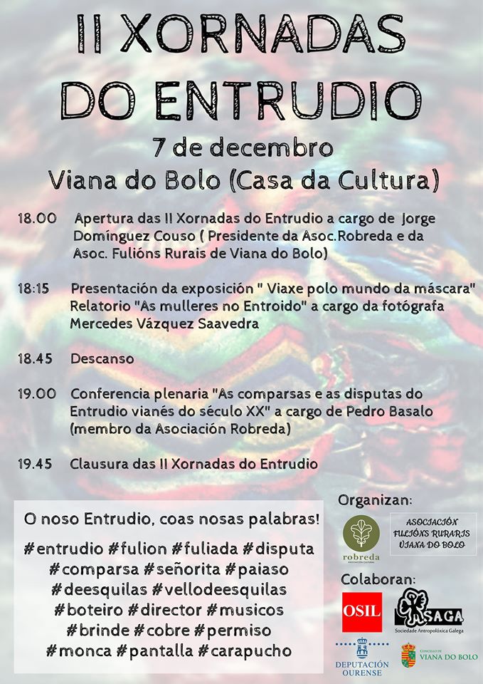 - II edición de las Xornadas de Entrudio organizada por la recién creada Asoc. Robreda y la Asoc. Fulións Rurais de Viana do Bolo. El acto tendrá lugar en la tarde de hoy sábado 7 de diciembre