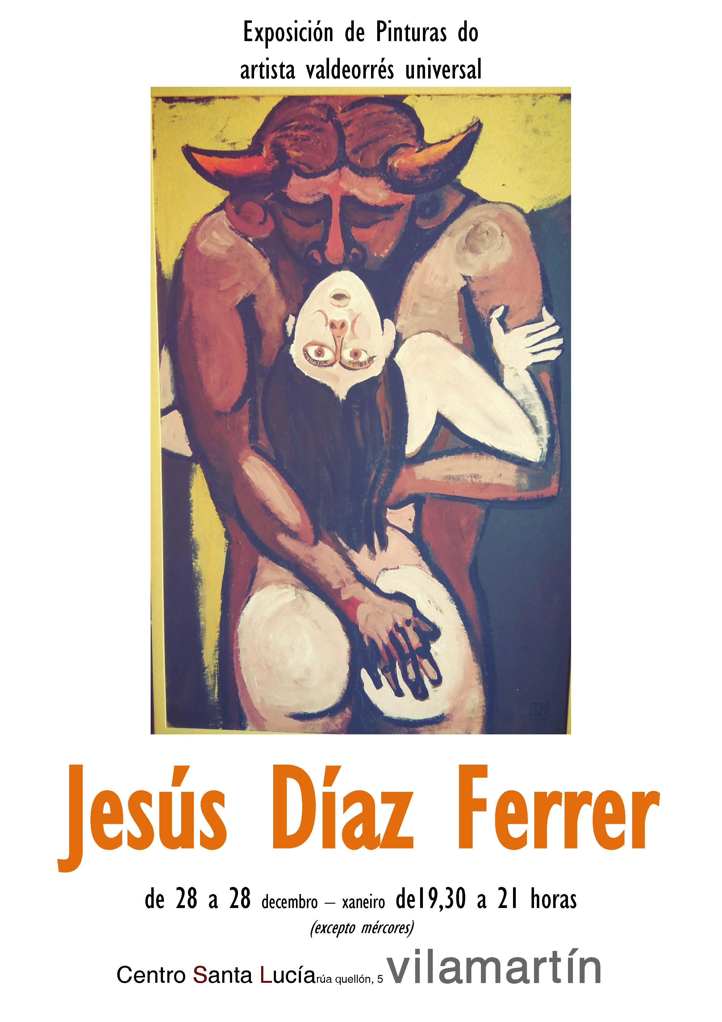 El centro Santa Lucía de Vilamartín de Valdeorras inaugura el jueves, 28 de diciembre, una exposición del artista valdeorrés Jesús Díaz Ferrer, fallecido hace aproximadamente un año. Permanecerá abierta hasta el 28 de enero de 2018, todos los días (excepto los miércoles), de 19,30 a 21,00 horas.