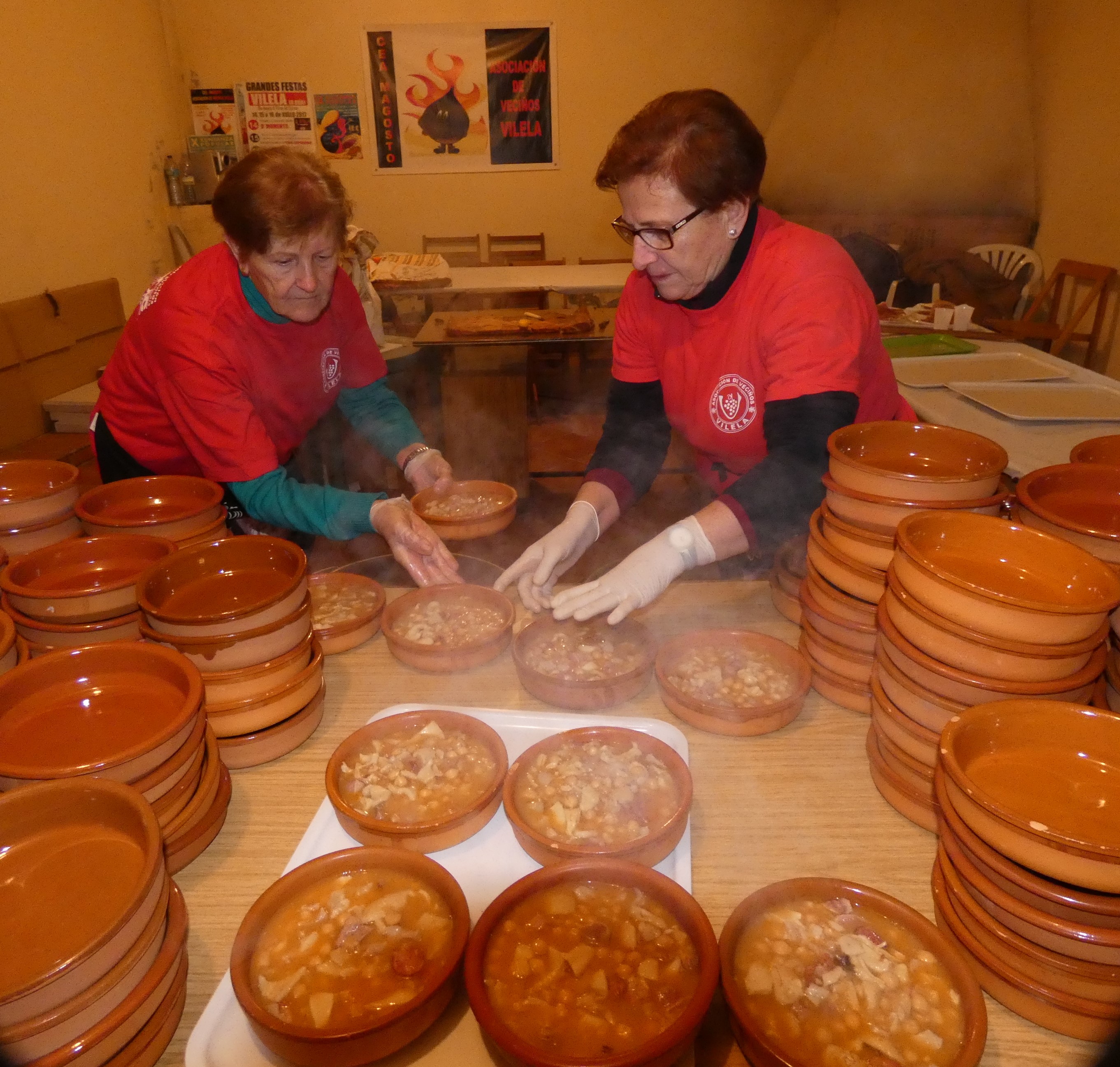 En la fiesta, fueron servidos entremeses variados, empanada y el plato “estrella” de la celebración, callos a la gallega, además de torta de “roxóns” (chicharrones), vino, café, licor café y licor de hierbas.