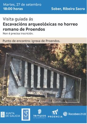 O Concello de Sober en colaboración coa Xunta e Tempos Arqueólogos organiza para mañá martes 27 de setembro unha visita guiada ás escavacións arqueolóxicas no hórreo romano de Proendos.