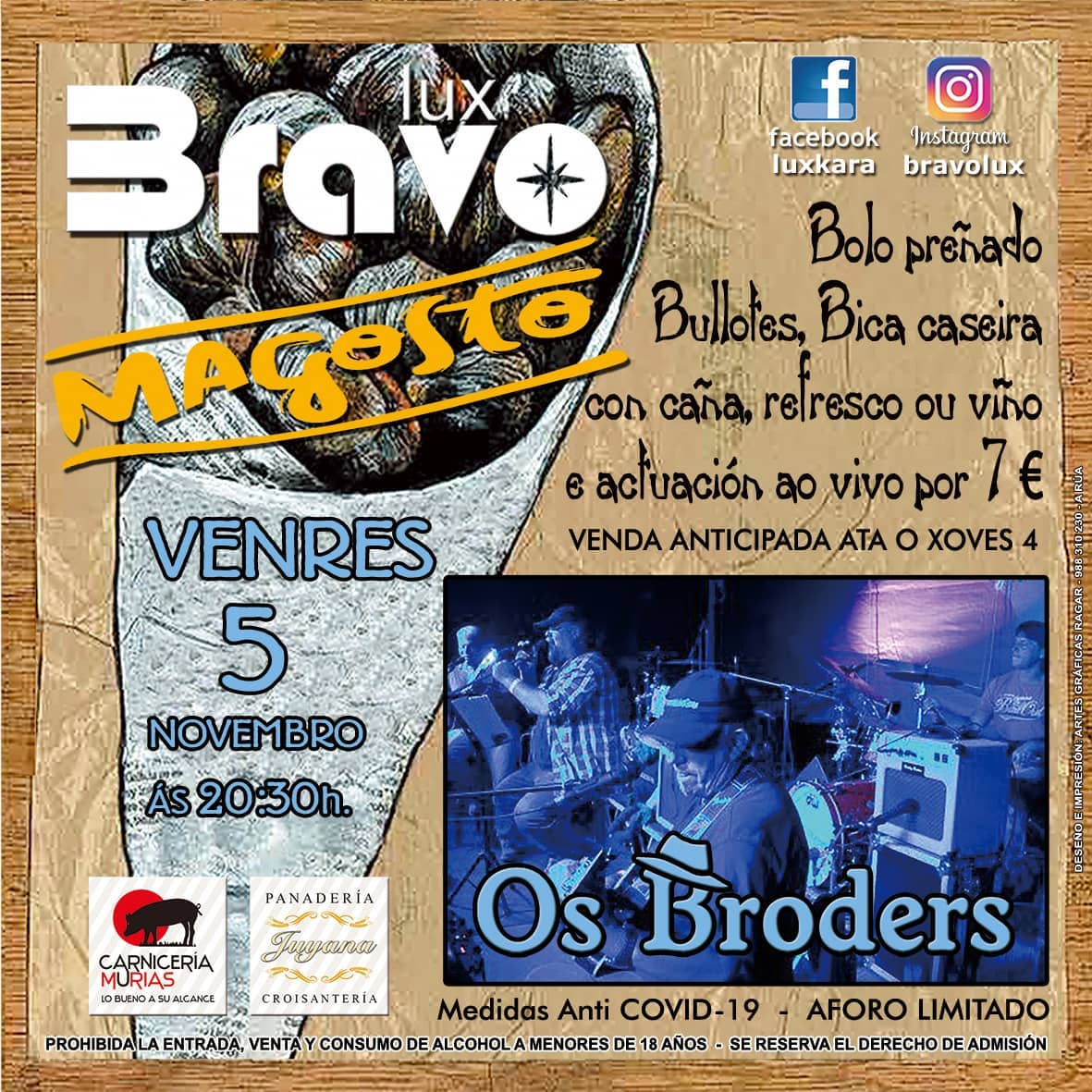 Este venres 5 de novembro o Bravo Lux retoma o seu tradicional magosto. Será ás 20:30 h. e non faltarán boas viandas, castañas, viño e música en vivo para completar unha gran tarde-noite de comezo de fin de semana.