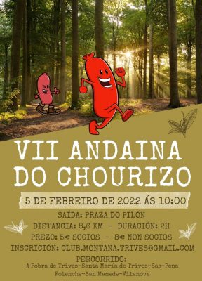 O sábado 5 de febreiro o Club Montaña Trives recupera a ‘Andaina do chourizo’, actividade que o pasado 2021 non se puido realizar por mor da pandemia.