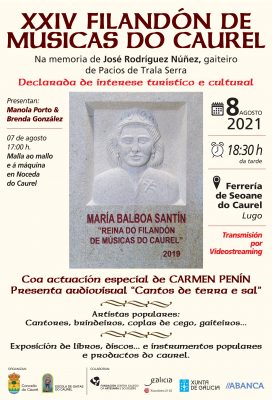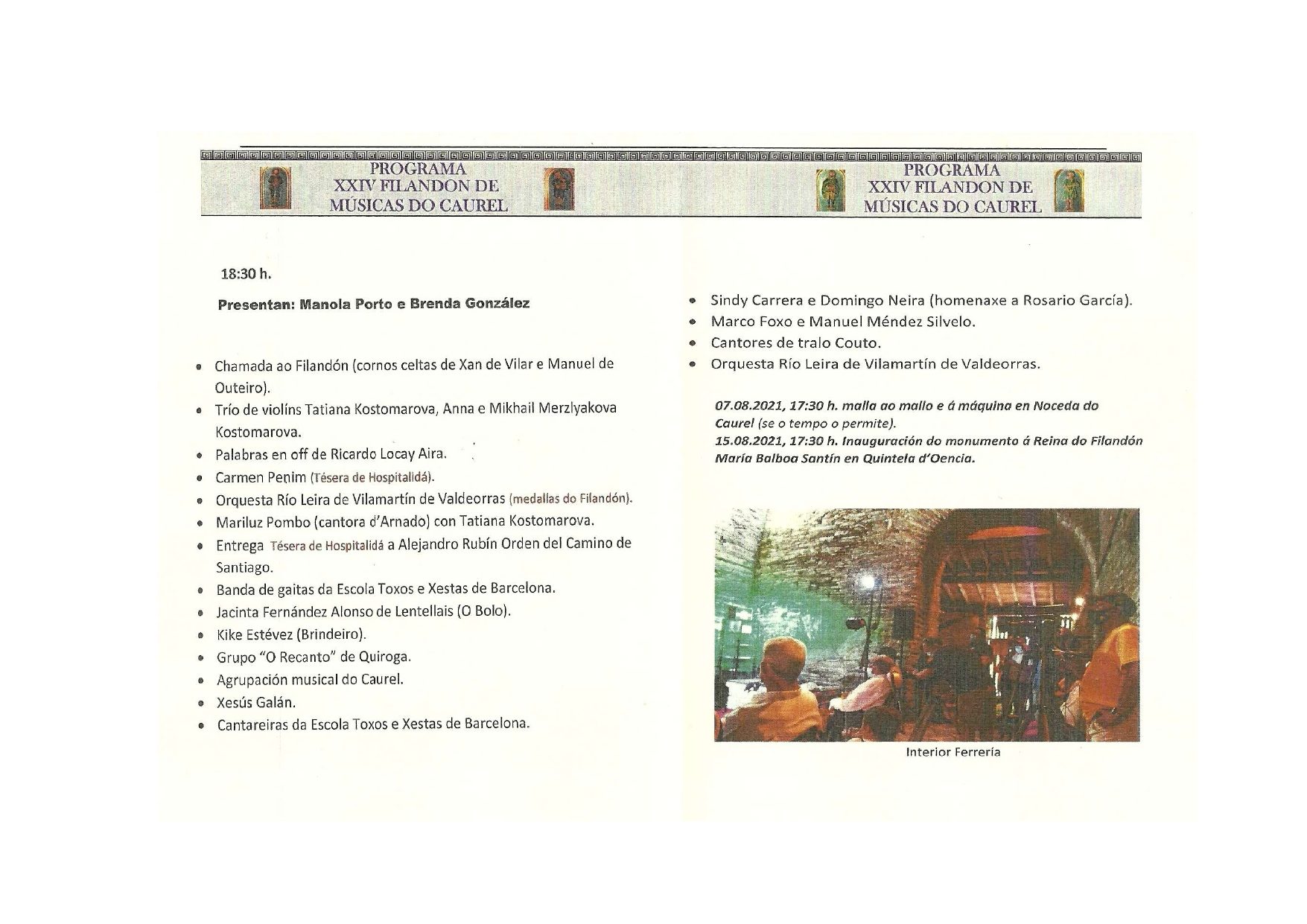 Ademais, o día 15 de agosto ás 15:30 horas inaugurarase o monumento á raíña do Filandón María Balboa Santín en Quintela d’Oencia.