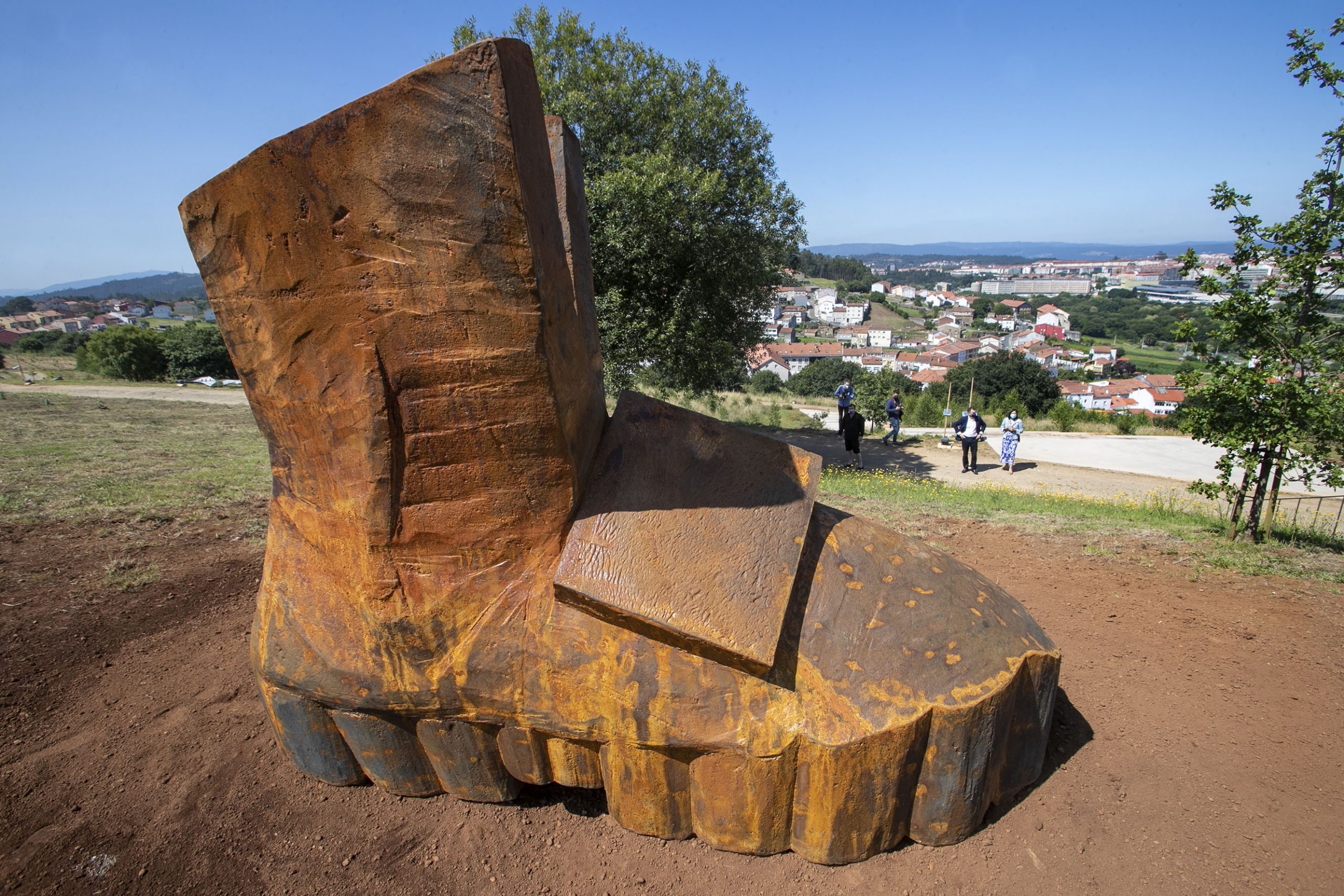 La Xunta de Galicia amplía el vínculo entre la Cidade da Cultura y el Camino de Santiago con la instalación en el Bosque de Galicia de una intervención escultórica de Francisco Leiro, Zapatos en el Camino , que puede visitarse desde ayer. La obra, compuesta de tres piezas realizadas en diferentes materiales, se sitúa en la cima de la ladera del Monte Gaiás que se abre sobre Compostela, estableciendo un diálogo visual con la Catedral de Santiago y la Vía de la Plata, que discurre paralela al complejo en su entrada a la capital de Galicia.